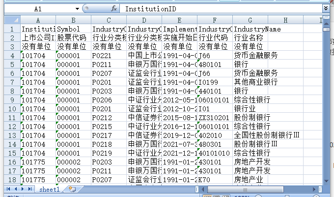 上市公司ID 股票代码 行业分类标准编码 行业分类标准 实施开始日期 行业代码 行业名称