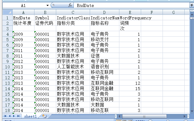 统计年度 证券代码 指标分类 指标名称 词频