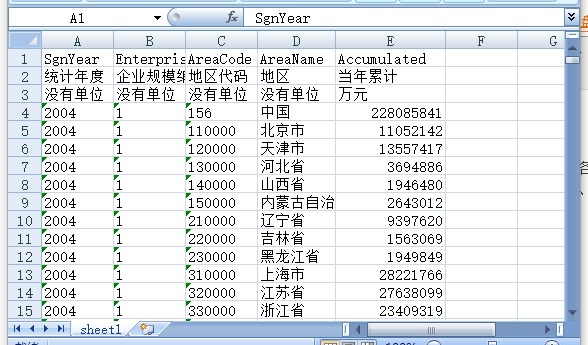 统计年度 企业规模编码 地区代码 地区 当年累计