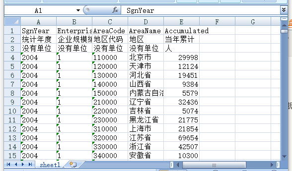 统计年度 企业规模编码 地区代码 地区 当年累计