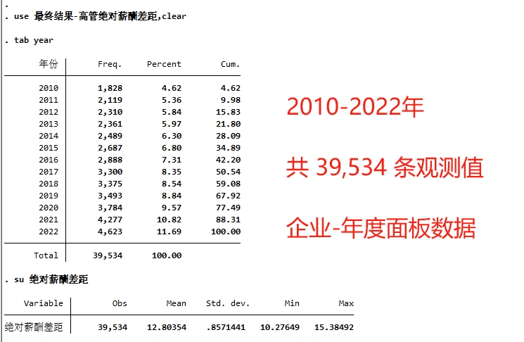范围:2010 - 2022 年,共 39,534 条观测值,全部A股上市公司