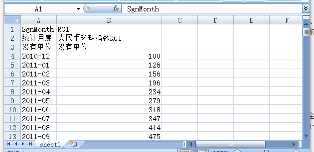 人民币国际化人民币环球指数表(月)2010-202307人民币环球指数RGI