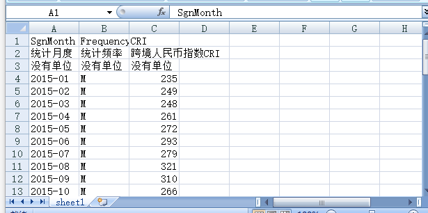 人民币国际化中国银行跨境人民币指数表(月)2015-202312统计频率跨境人民币指数CRI