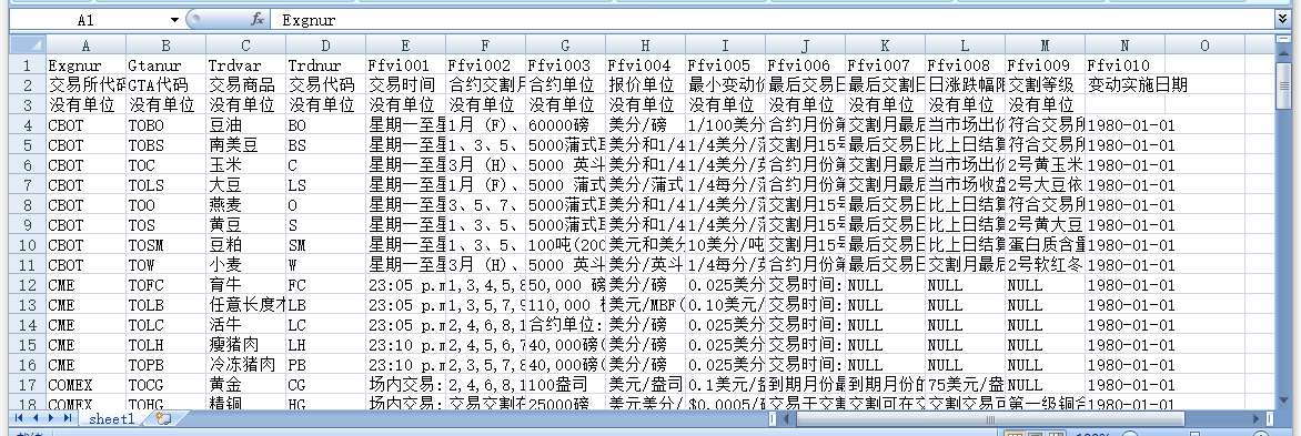交易所代码 GTA代码 交易商品 交易代码 交易时间 合约交割月份 合约单位 报价单位 最小变动价位 最后交易日 最后交割日 日涨跌幅限制 交割等级 变动实施日期
