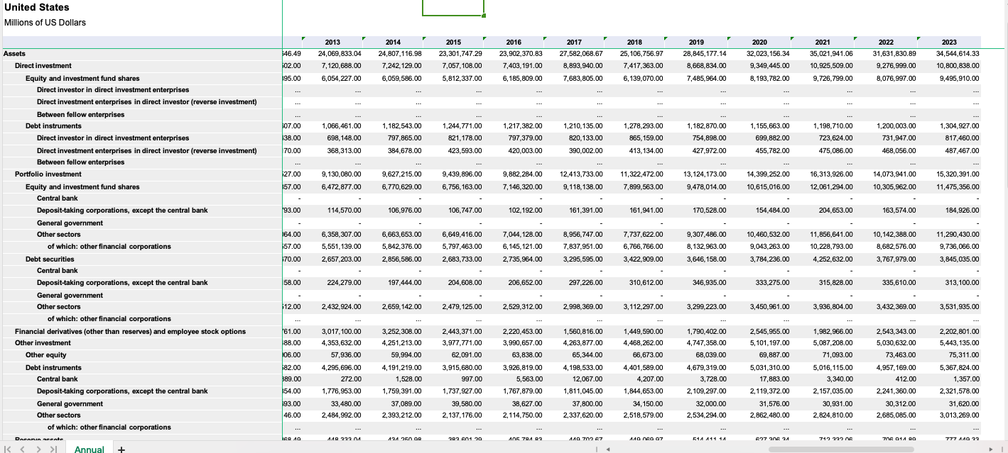 2000-2023 2024 2025年 美国 德国 英国 日本 韩国 法国 中国 印度 新加坡 俄罗斯 泰国 加拿大 澳大利亚 欧元区 国际投资头寸 IIP