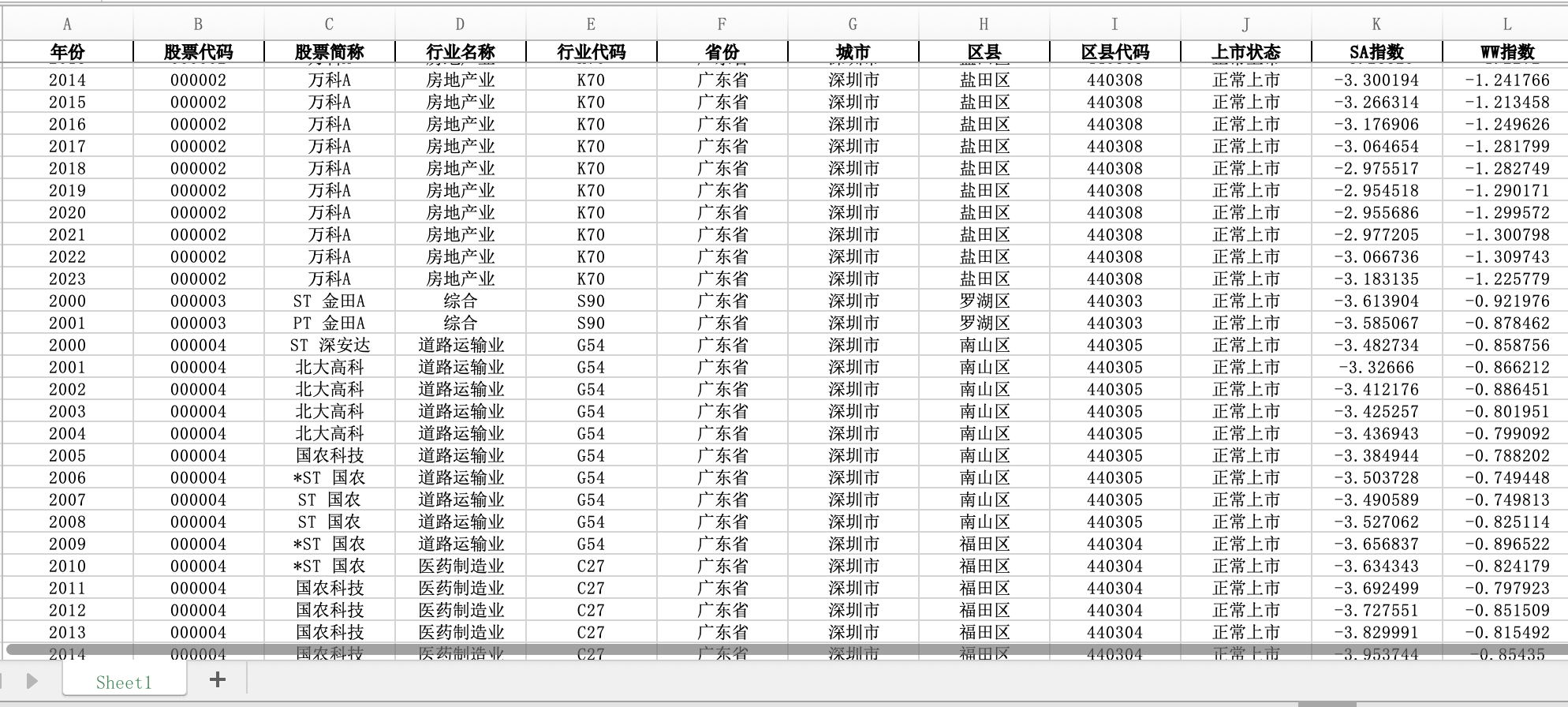 数据说明:包括SA、WW指数