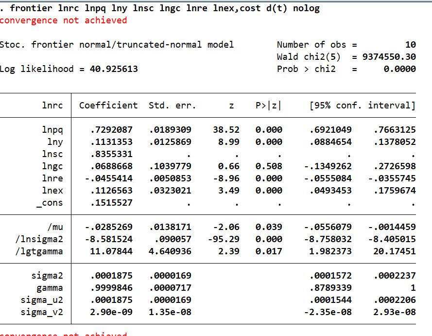 SFA测算成本效率不收敛,求助