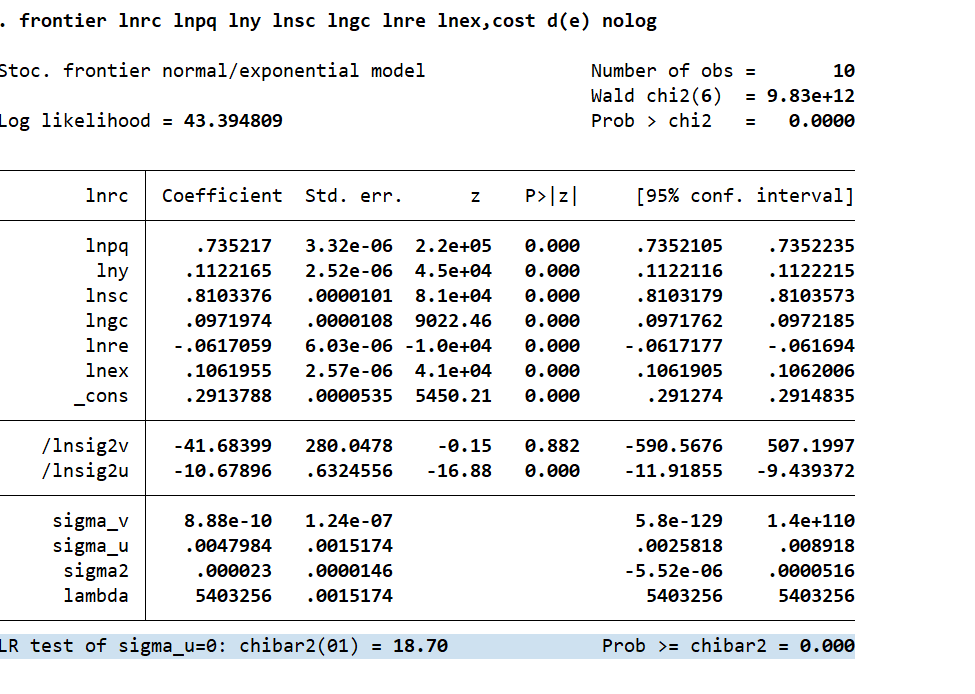 SFA计算出来的成本效率大于1是什么原因啊?