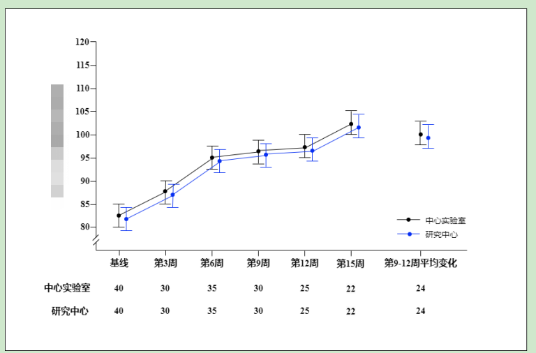 这是轴表(Axis Table),在当前图形中,可能是受试者的人数。一般使用 axistable 语句绘制,这里有一个例子可供参考: