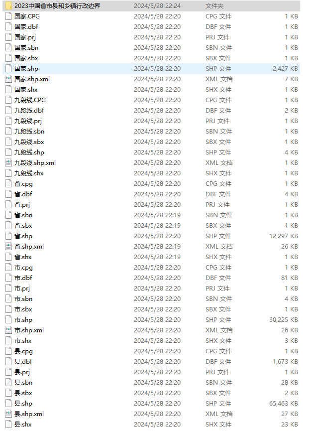 1、含中国省地市州区县的边界(分开的)以及乡镇街道边界合并在一套文件的2023版本