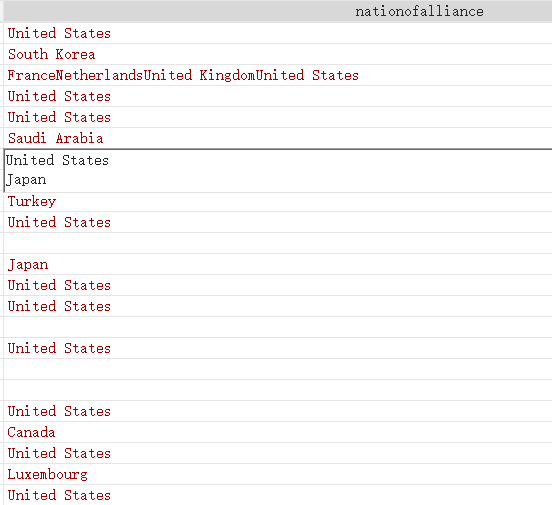 3. 上面的命令会根据逗号将原列拆分成多个新的列,列的名字会是 `nationofalliance1`, `nationofalliance2` 等等。