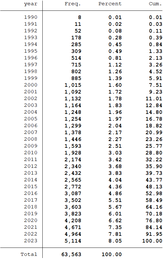 与大多数文献相同,做了如下的处理:剔除金融行业的样本;剔除当年年末被ST、*ST或PT的上市公司