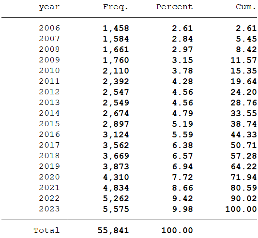 样本选择:全部A股2006-2023年数据(“董监高及相关人员持股变动情况表”文件是从2004-11-29开始,数据起点选择为2006年)