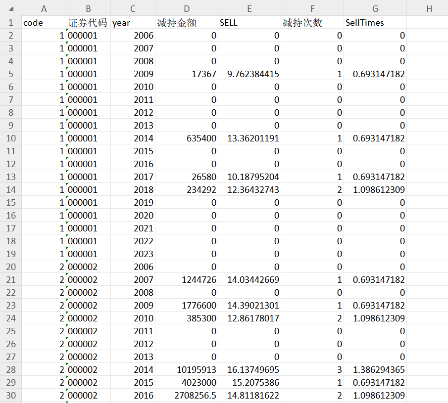 SellTimes=ln(1+减持次数)