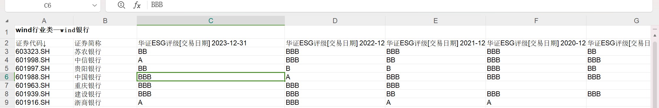 2023-2014年上市银行华证ESG评级数据.xlsx