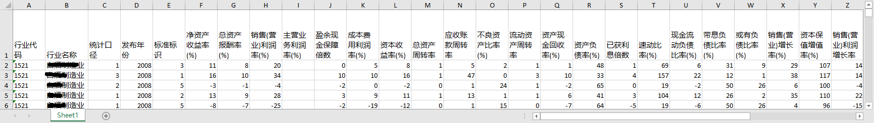 行业基础财务指标