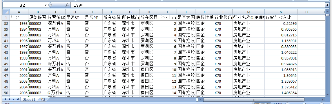 上市公司1990-2023数据存货与收入比
