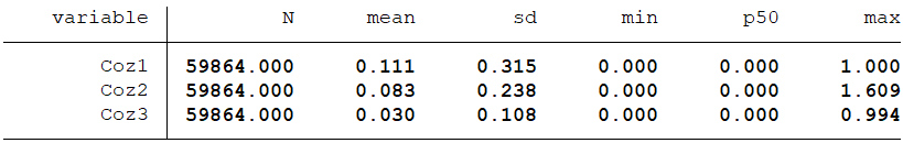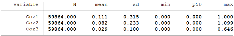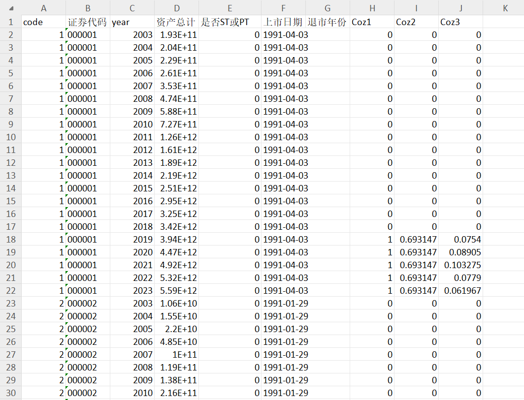 ③共同机构所有权持股比例(Coz3),等于一家上市公司当年拥有的所有共同机构投资者持股比例总和。