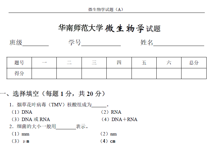 华师华南师范大学微生物学本科生期末试卷五套及答案