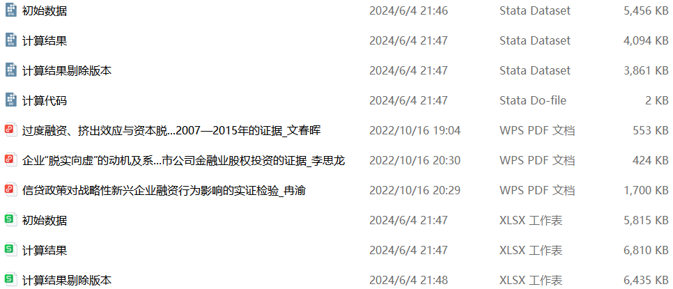 版本2:在做了上述剔除处理的基础之上,同时剔除了金融行业的样本和当年年末被ST、*ST或PT的上市公司,文件名为“计算结果剔除版本”