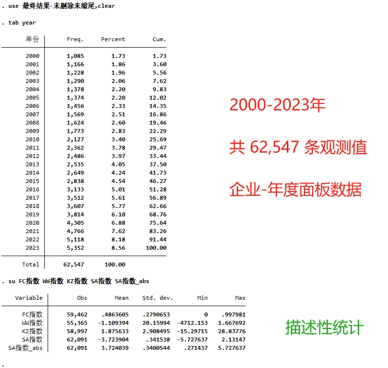 【范围】2000 - 2023 年,共 62,547 条观测值,全部A股上市公司