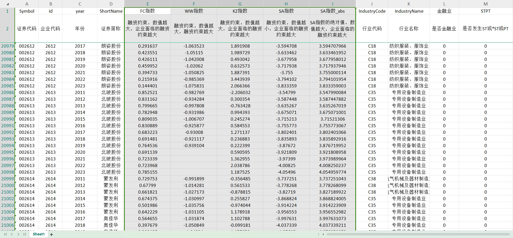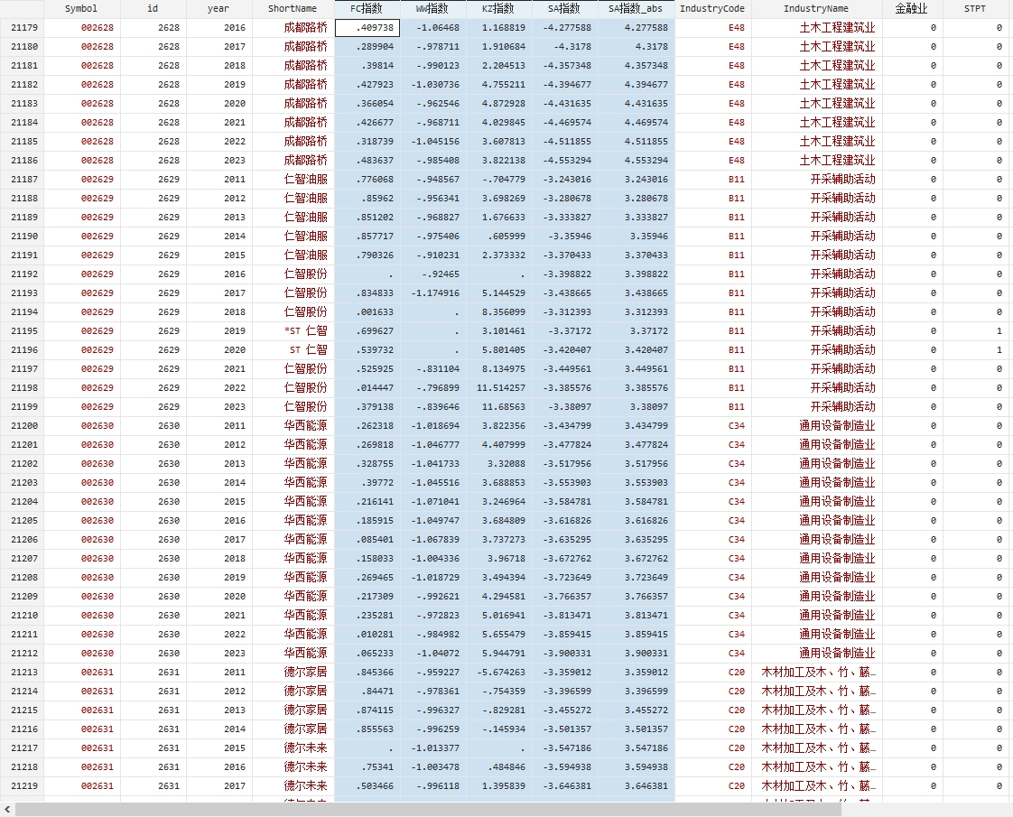 SA指数_abs:SA指数的绝对值,数值越大,企业面临的融资约束越大