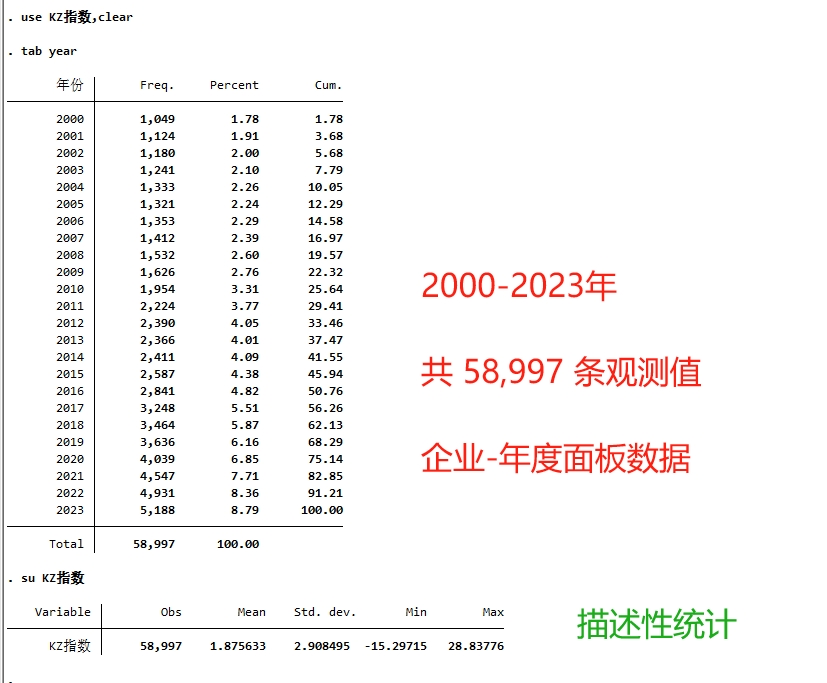 【范围】2000 - 2023 年,共 58,997 条观测值,全部A股上市公司