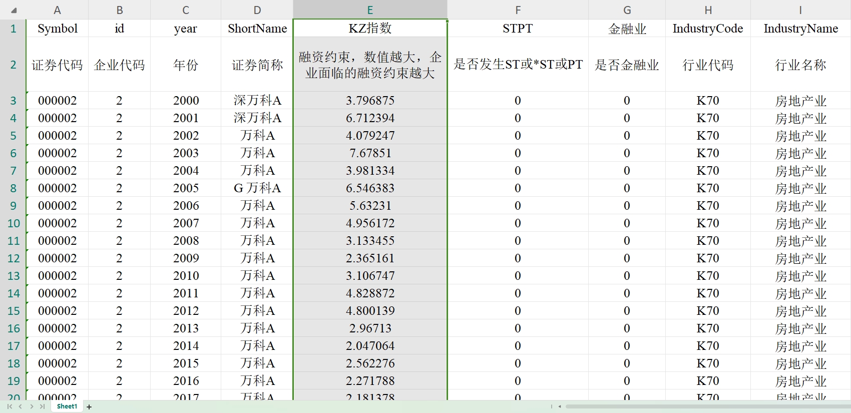 [2000-2023] A股上市公司 融资约束 - KZ指数