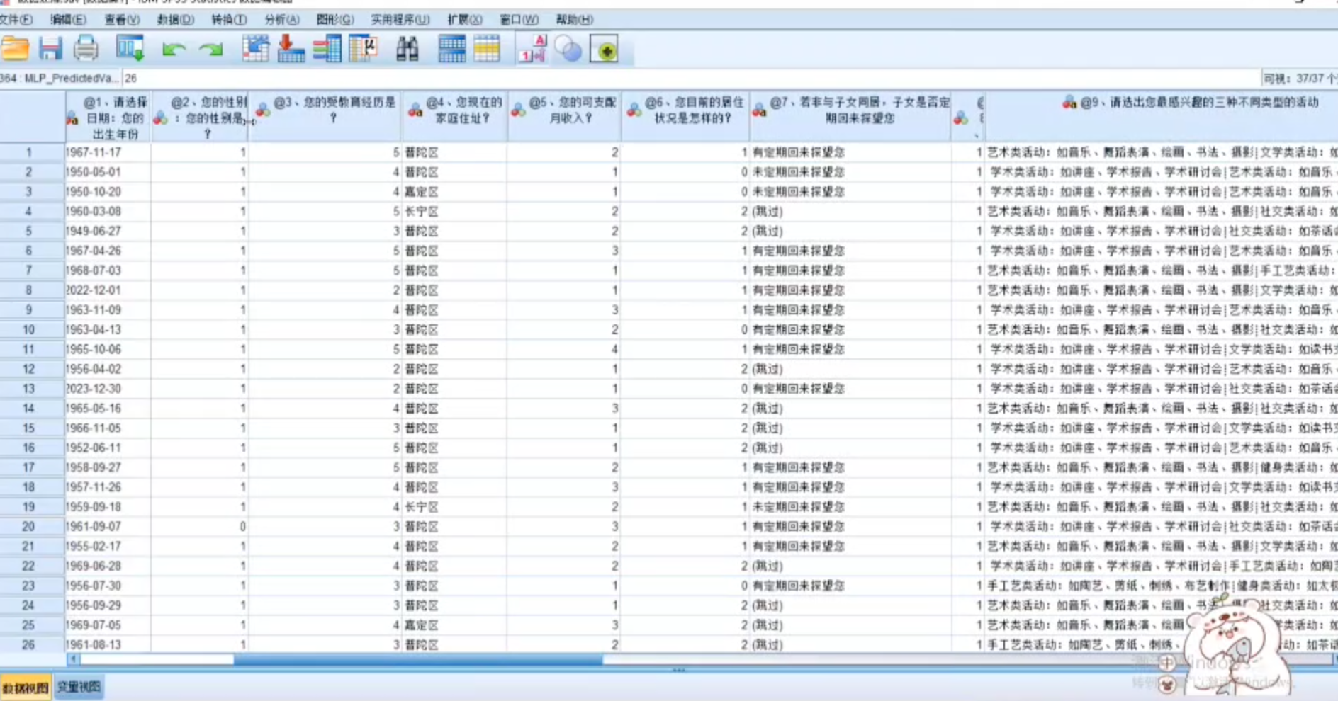 利用spss点击分析-相关-双变量,将上述编码的信息都放入变量,点击确认,运行结果相关性矩阵如下: