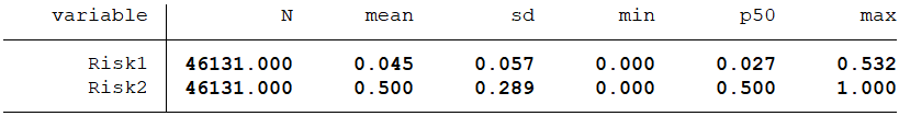 另外,由于按这种方法计算的经营风险不服从正态分布,所以本文计算了代表经营风险的息税折旧摊销前利润率标准差的累积分布概率,并以此衡量经营风险(Risk2)。