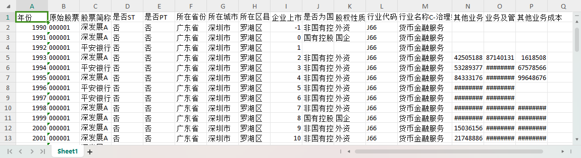 上市公司1990-2023数据其他业务收入业务及管理费其他业务成本股权性质行业名称上市年龄
