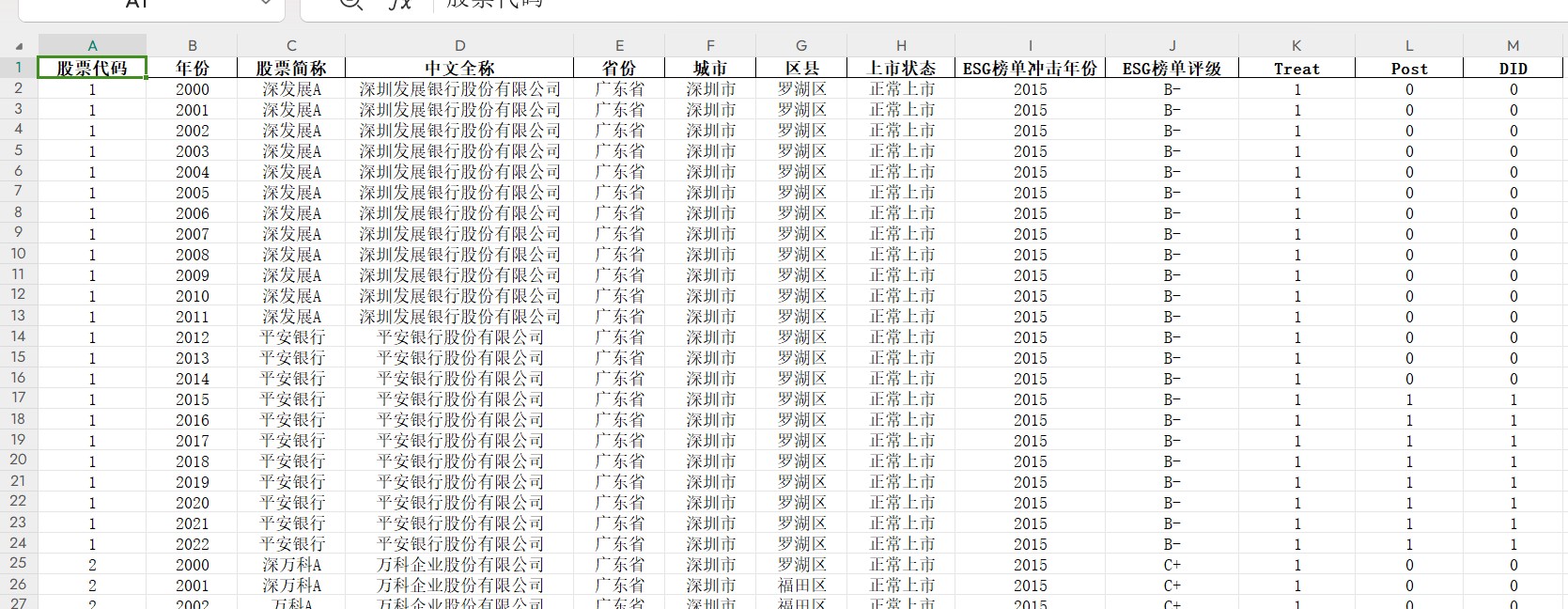 数据说明:包含ESG榜单评级、DID数据