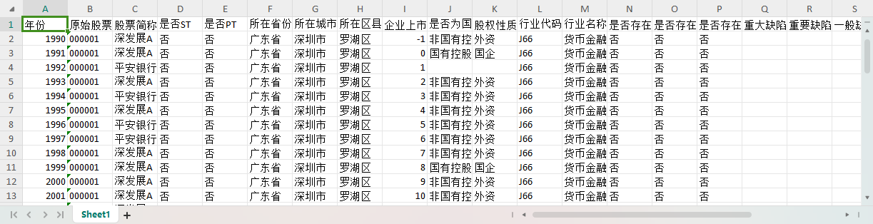 数据包含上市公司每年是否ST、PT的标志,股权性质、是否国有控股、上市公司所在的省份、城市、行业代码、行业名称等变量,便于您根据需要筛选