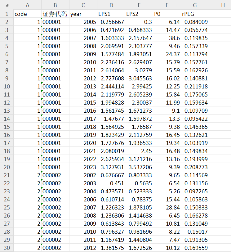 EPS2表示以当期为基准,预测两年之后的每股收益