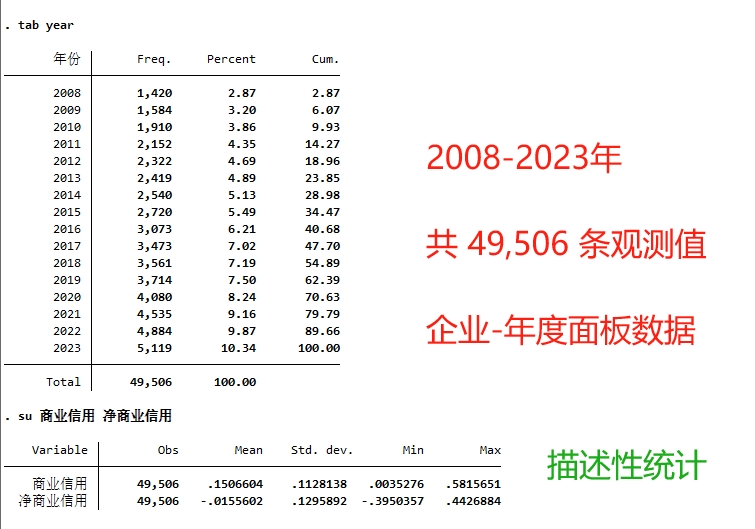 给我一把斧头 发表于 2024-6-9 18:19 【范围】2008 - 2023 年,共 49,506 条观测值,全部A股上市公司 【注意】已经剔除关键数据缺失、金融业、 ...
