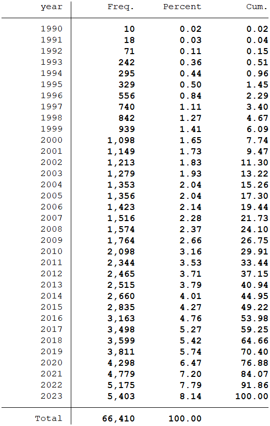 样本选择:全部A股1990-2023年数据