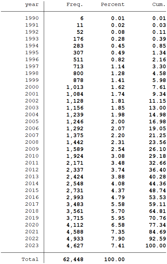 样本选择:全部A股1990-2023年数据