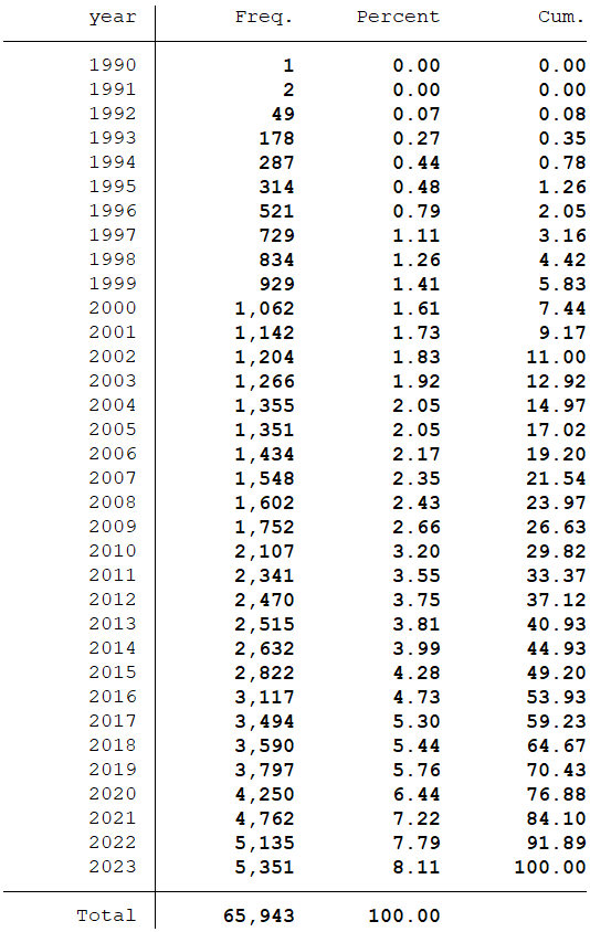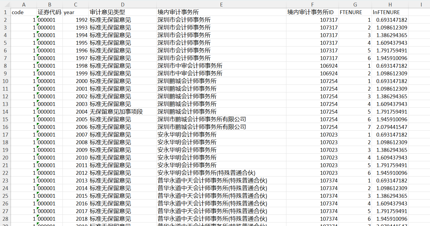FTENURE为事务所任期,定义为事务所连续审计某一公司的总年数。