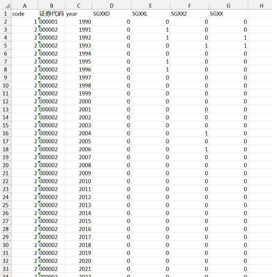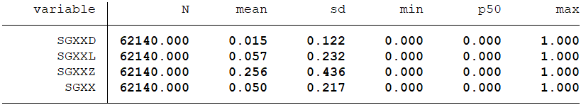 “双高现象”(SGXXD/SGXXL/SGXXZ/SGXX)变量为虚拟变量,若该上市公司发生“双高现象”,则该变量取值为1,否则为0。