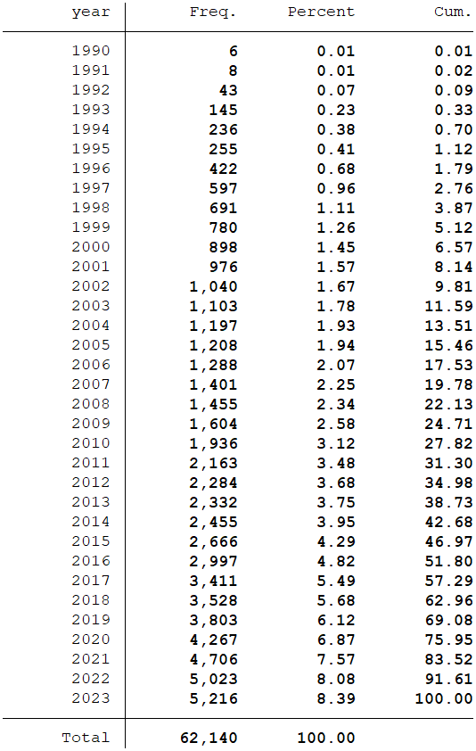 样本选择:全部A股1990-2023年数据
