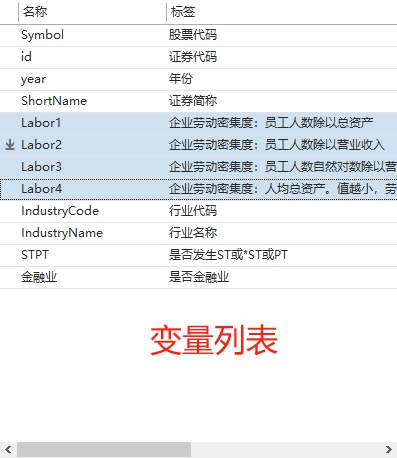 企业劳动密集度:人均总资产。值越小,劳动密集度越高。