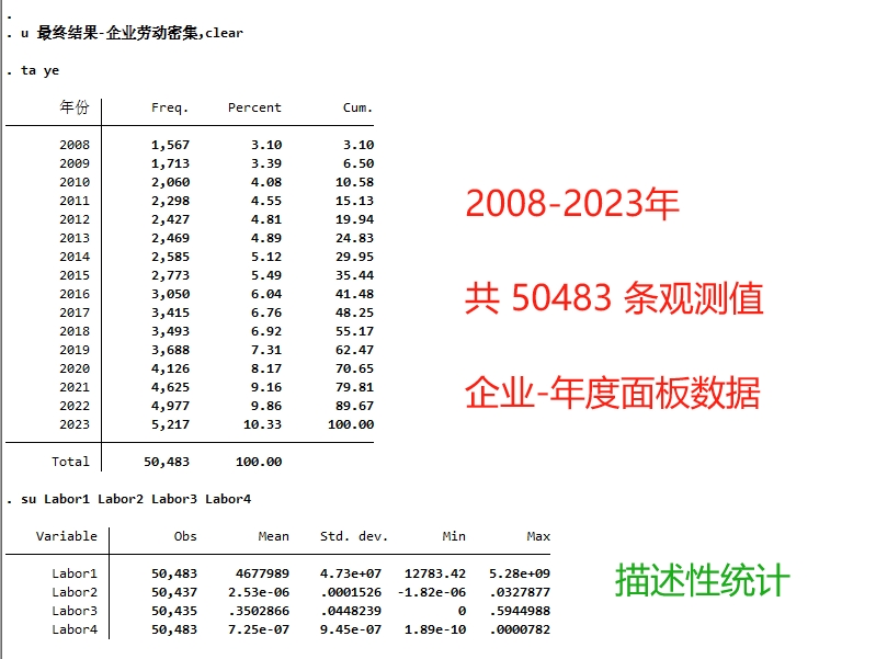 【范围】2008 - 2023 年,共 50483 条观测值,全部A股上市公司