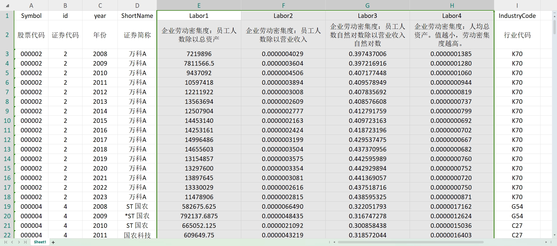【2023】企业劳动密集度