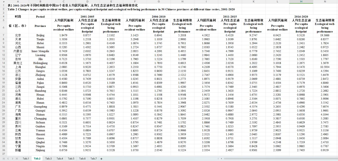 数据作者董莹;孙玉环东北财经大学统计学院,大连116025数据引用方式:董莹, 孙玉环. 中国生态福利绩效及驱动因素分解数据集(2001-2020)[J/DB/OL]. 全球变化数据仓储电子杂志(中英文), 2024.