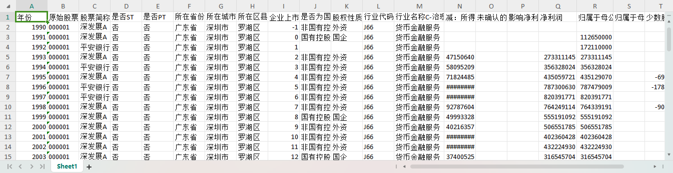 年份 原始股票代码 股票简称 是否ST 是否PT 所在省份-注册地详细 所在城市-注册地详细 所在区县-注册地详细 企业上市年龄 是否为国有控股-依据实际控制人性质筛选-股东子库 股权性质 行业代码C-治理结构子库 行业名称C-治理结构子库 减:所得税费用 未确认的投资损失 影响净利润的其他项目 净利润 归属于母公司所有者的净利润 归属于母公司其他权益工具持有者的净利润 少数股东损益 净利润-民营子库