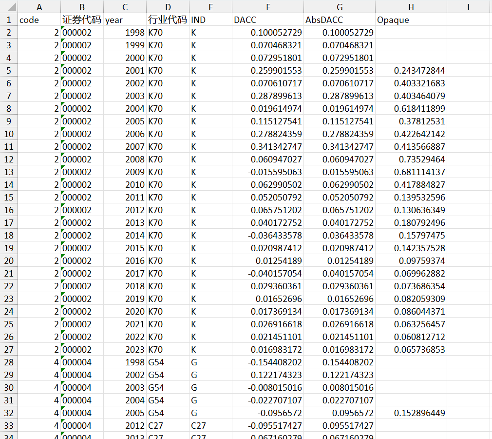 以下仅以 1.1.2应计盈余管理(修正的琼斯模型Dechow等,回归残差项) 为例