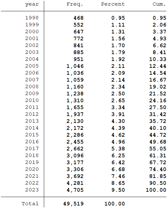 样本选择:全部A股1998-2023年数据(“经营活动产生的现金流量净额”数据是从1998年开始,所以数据起点选择为1998年)。其中,模型1.1.7和1.1.8较为特殊,计算结果均为1999-2022年。