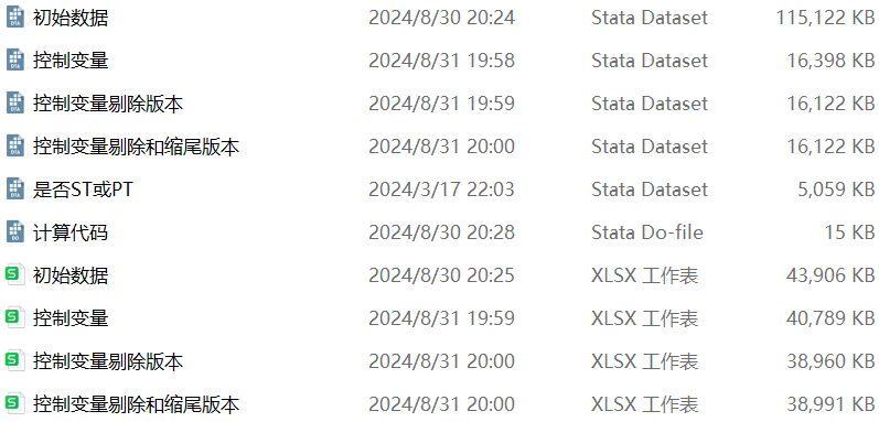 版本2:剔除但未缩尾,剔除了金融行业的样本和当年年末被ST、*ST或PT的上市公司,文件名为“控制变量剔除版本”