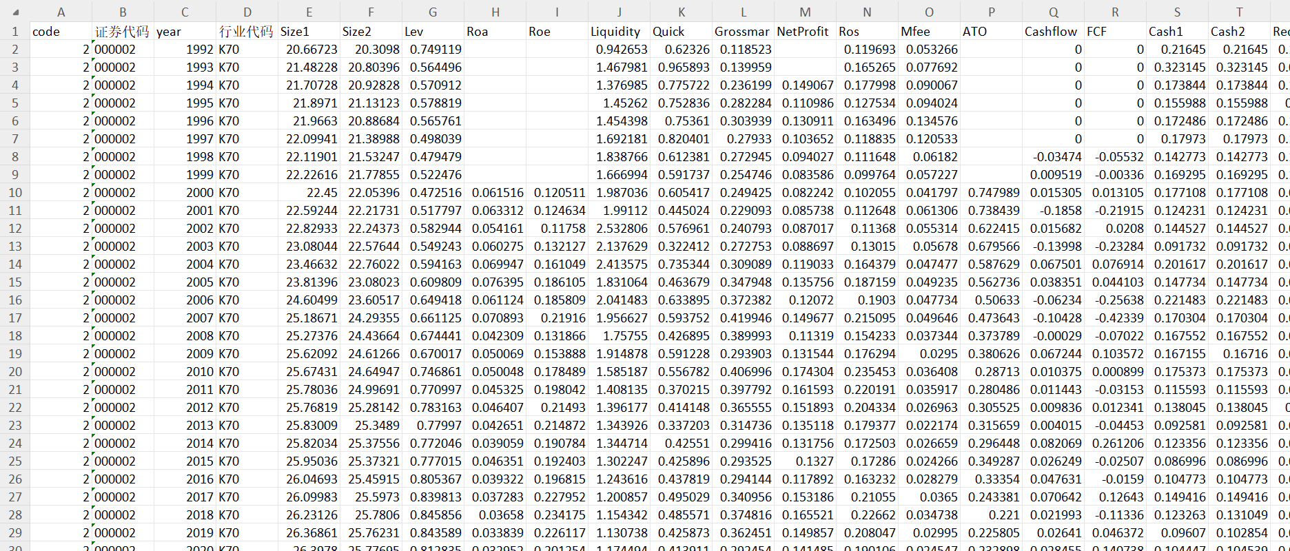 在进行实证分析时,尤其是对于财务和经济研究领域,控制变量的选择及其计算方法对结果的准确性和可靠性至关重要。以下是在Stata软件中常用的一些财务比率作为控制变量的计算公式和步骤: