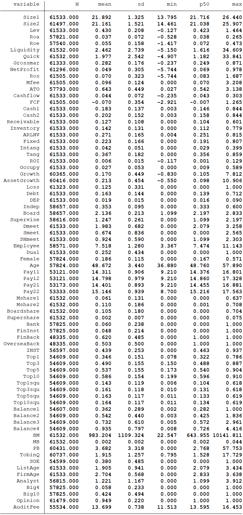- **Size1**:使用年末总资产的自然对数表示公司规模。